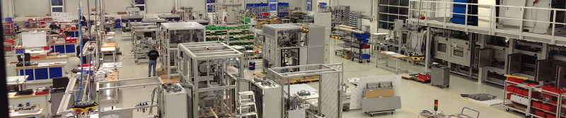 - Sondermaschinen wie Prüf- und Montageanlagen, unter anderem im Klimabereich